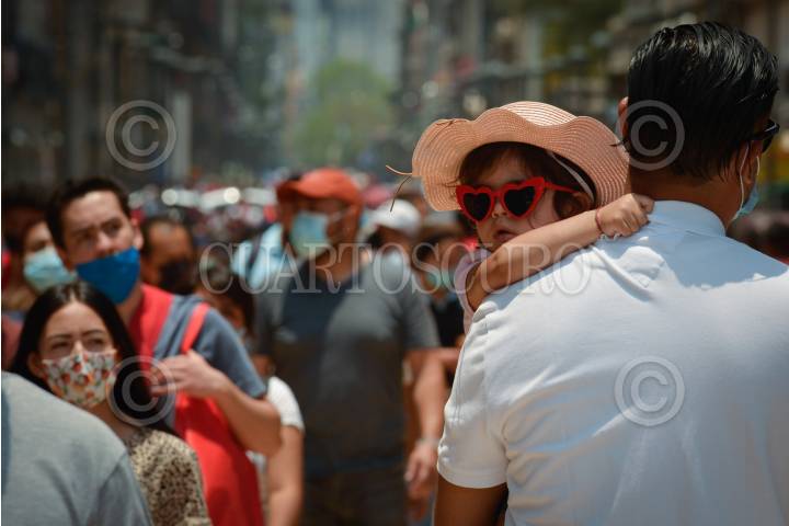 Continúa el alto nivel de aglomeraciones en las principales calles del centro histórico. La capital del país continuará una semana más en semáforo naranja epidemiológico por covid-19.