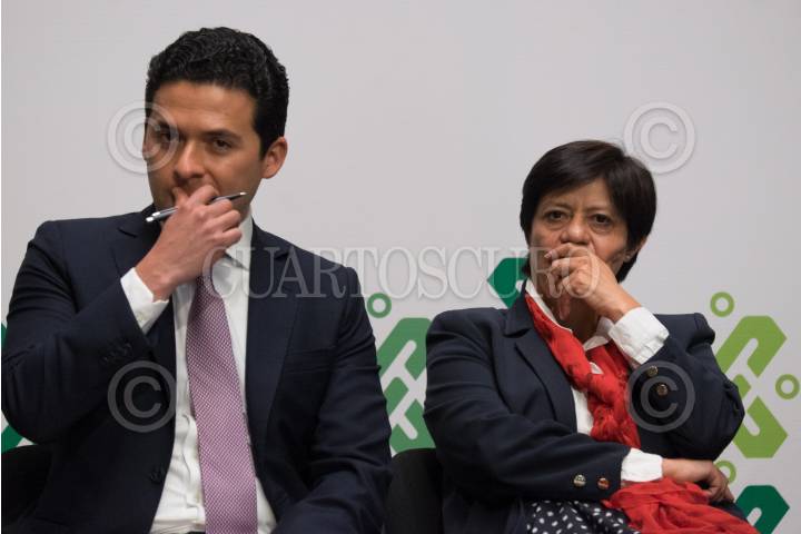 CIUDAD DE MÉXICO, 12MAYO2019.- Rafael Díaz Leal Barrueta, secretario de Obras Públicas del Estado de México y Blanca Elena Jiménez, secretaria de Comisión Nacional del Agua (Conagua) en el evento "Acciones en el Sistema Cutzamala para mejorar el abasto de agua al Valle de México", en el Patio del Antiguo Palacio del Ayuntamiento. FOTO: GRACIELA LÓPEZ /CUARTOSCURO.COM