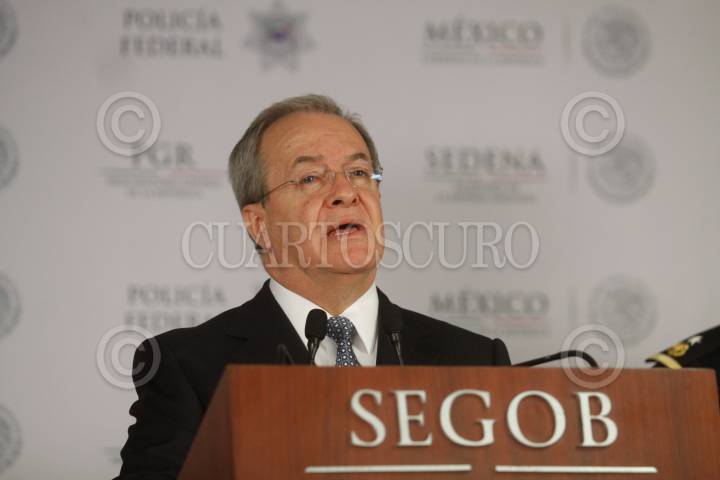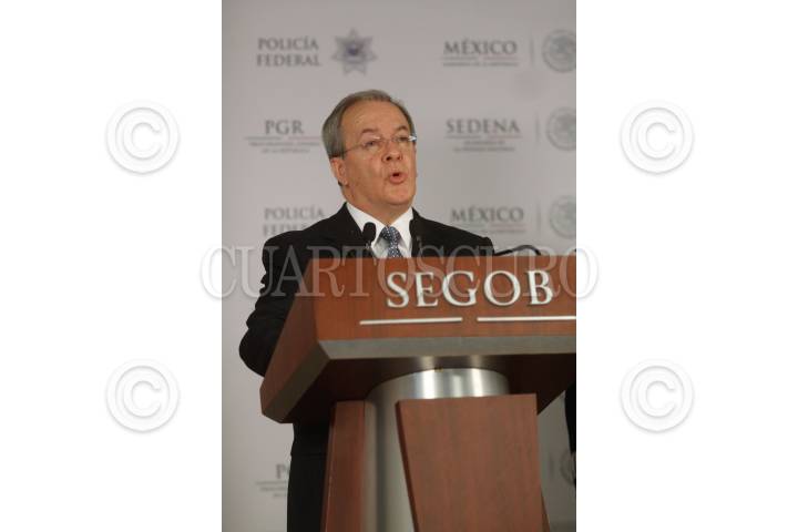 MÉXICO, D.F., 28FEBRERO2014.- Monte Alejandro Rubido, secretario ejecutivo del Sistema Nacional de Seguridad, confirmó el abatimiento de Francisco Galeana Núñez, alias "El Pantera", uno de los líderes del cártel de Los Caballeros Templarios. El presunto delincuente, quien tenía 49 años, fue abatido durante un enfrentamiento en el municipio de Artega, Michoacán, en el cual se registró también como heridos a dos elementos de seguridad, en lo dicho durante la conferencia que se realizó en la Secretaría de Gobernación. FOTO: MOISÉS PABLO /CUARTOSCURO.COM