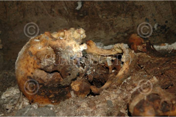 HUEYPOXTLA, ESTADO DE MÉXICO 23AGOSTO2009.- Con motivo de las fiestas de "San Bartolomé Apostol" fueron abiertas al público las criptas que datan del siglo XVI, donde se encuentran restos humanos de aquella época. FOTO: MARIO NULO/CUARTOSCURO.COM