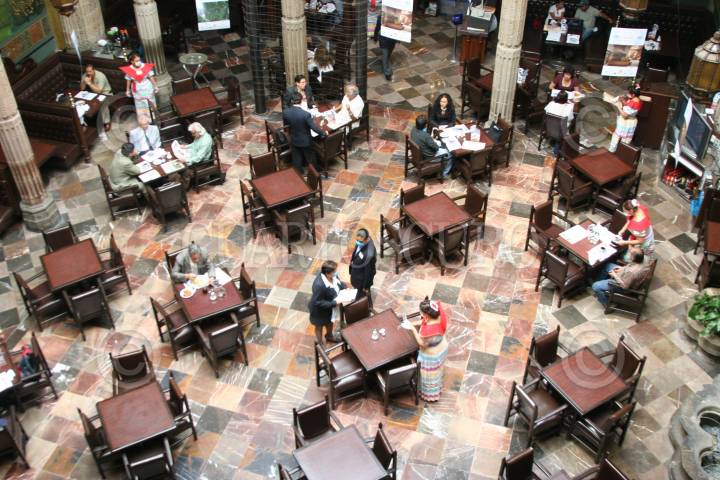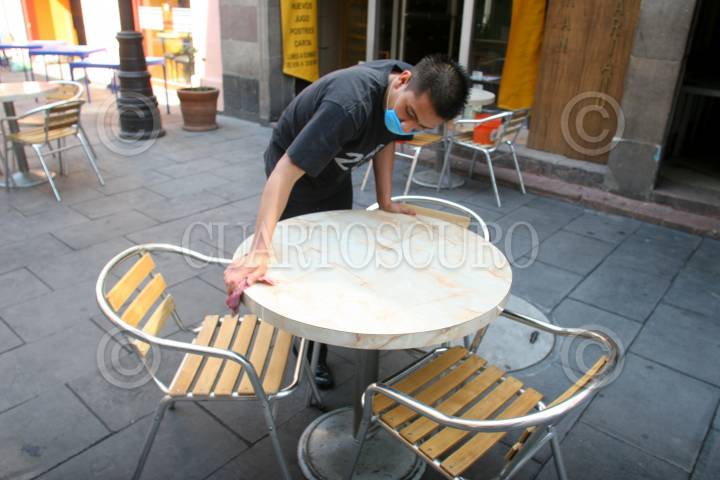 MÉXICO, .D.F,. 06MAYO2009.- Hoy fueron abiertos restaurantes de la capital después de haber cerrado por la alerta sanitaria de la influenza Humana, una de las medidas para que estos establecimientos abrieran es que las mesas de los clientes tienen que estas a 2,25 cm de distancia entre ellas. FOTO: RICARDO CASTELAN/CUARTOSCURO.COM