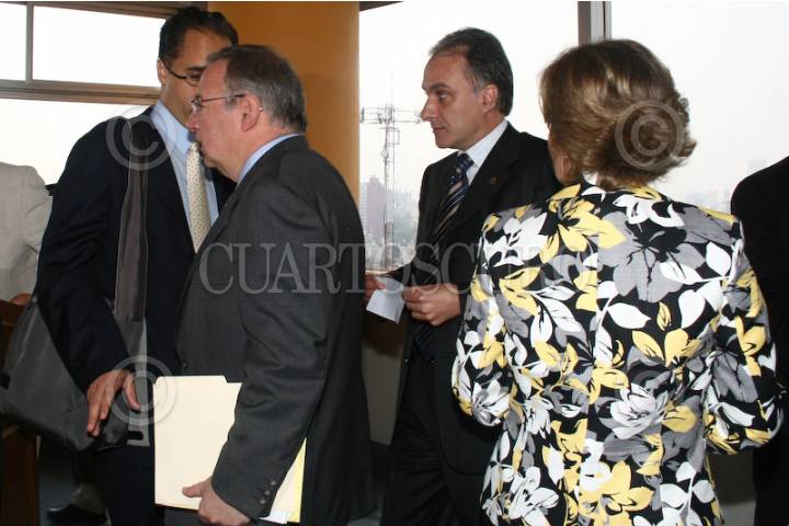 MÉXICO, D.F., 07JULIO2009.- Los consejeros Alfredo Figueroa, Marco Antonio Baños, en conferencia de prensa en la macro sala de las instalaciones del Instituto Federal Electoral en donde abordaron el tema del Cómputo Distrital que iniciará al día siguiente en los 300 distritos electorales en el país. FOTO: SÁSHENKA GUTIÉRREZ/CUARTOSCURO.COM