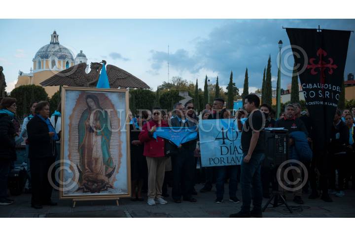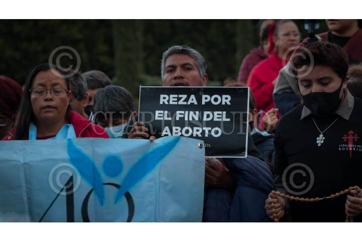 TLAXCALA, TLAXCALA, 22OCTUBRE2024.- Feligreses católicos se reunieron esta tarde frente al Palacio Legislativo de Tlaxcala para expresar su desacuerdo con las iniciativas de diputados locales que buscan despenalizar el aborto. La multitud, compuesta por personas de diversas edades y procedencias, se unió en oración y protesta pacífica para defender sus creencias y valores. FOTO: ALAÍN HERNÁNDEZ/CUARTOSCURO.COM