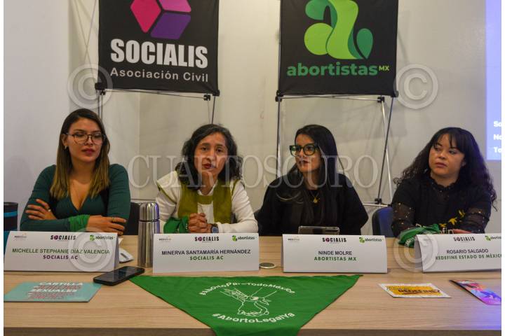 Integrantes de Abortistas MX, REDefine México y Socialis AC informaron en conferencia de prensa la presentación de amparos para exigir se declare inconstitucionalidad del delito de aborto en Edoméx.