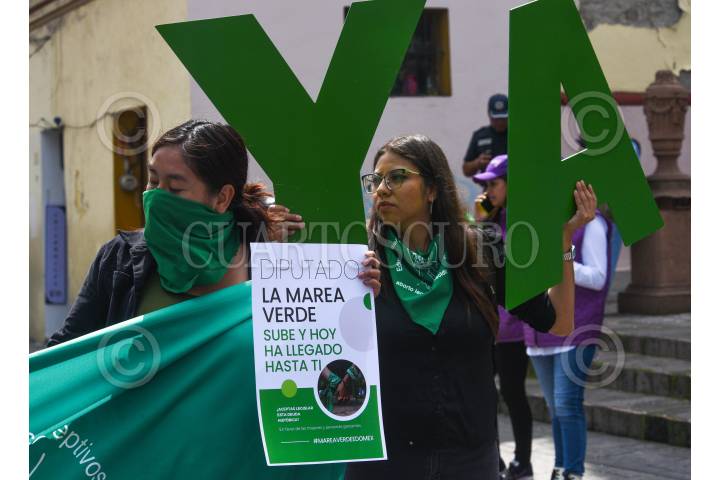 TOLUCA, ESTADO DE MÉXICO, 05SEPTIEMBRE2024.- Activistas, académicas, organizaciones de la sociedad civil, colectivas, feministas e integrantes del movimiento amplio de mujeres del Estado de México acudieron a la Cámara de Diputados a manifestarse por la Despenalización del Aborto en el Edoméx, exhortaron a los integrantes de la LXII Legislatura local y aprobar la ILE, reparando la deuda con miles de mujeres mexiquenses, así como respetar, proteger y asegurar el derecho humano a la salud y la autonomía sexual y reproductivo en condiciones de justicia reproductiva. FOTO: CRISANTA ESPINOSA AGUILAR /CUARTOSCURO.COM