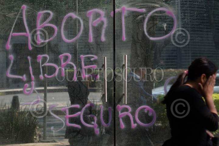 CIUDAD DE MÉXICO, 13MAYO2019.- En la imagen una pinta en una puerta de avenida Reforma con la leyenda "Aborto libre y seguro", en la capital existe desde hace doce años la Interrupción Legal del Embarazo (ILE), antes de las doce semana de gestación, sin embargo, existen estados como el de Nuevo León que penaliza con cárcel a las mujeres que lo practiques. FOTO: MOISÉS PABLO /CUARTOSCURO.COM