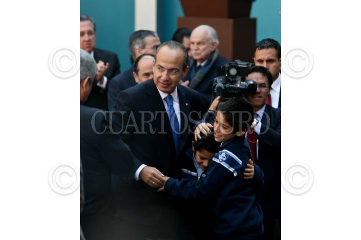 MÉXICO, D.F., 29NOVIEMBRE2009.- El presidente Felipe Calderón abraza a sus hijos al termino de su discurso conmemorando el tercer año como mandatario de la República Mexicana en el patio central de Palacio Nacional. FOTO: RODOLFO ANGULO/CUARTOSCURO.COM