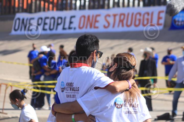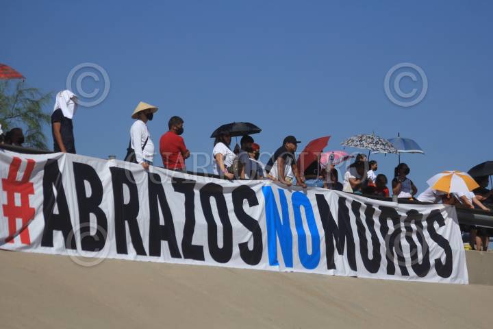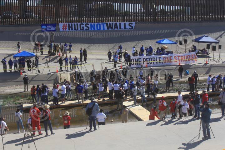 Un numeroso grupo de familias se reencontraron por minutos en el centro del río bravo ,para abrazarse y expresar diversas muestras de afecto,en la edición anual de Abrazos No Muros, organizada por Border Network for Human Rights en Ciudad Juárez.