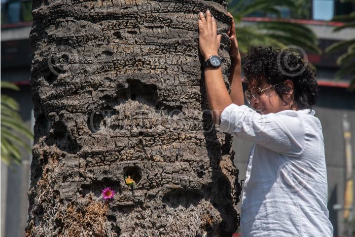 Personas se despiden de "La Palma" tomándose fotografías y abrazándola, ya que será retirada el próximo 24 de abril derivado a una infección por hongo.