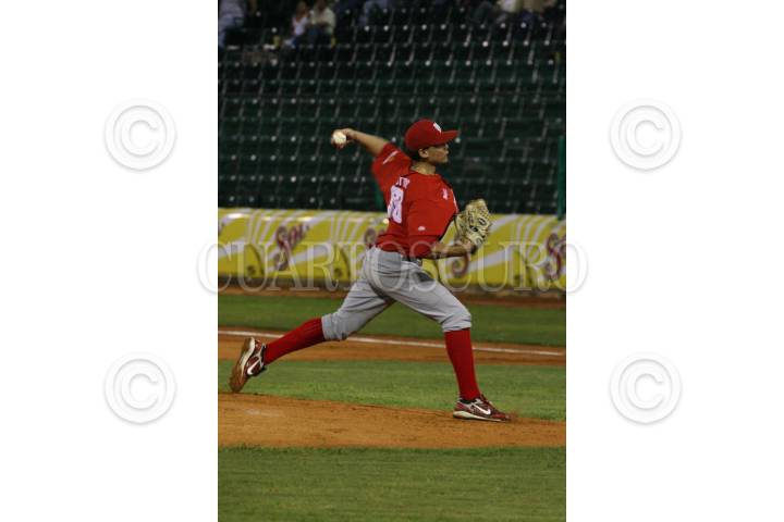 VILLAHERMOSA, TABASCO, 01JULIO2009.- Luis de la O., picher abridor por los Rojos del Aguila de Veracruz en el segundo juego de la serie contra los Olmecas de Tabasco. FOTO: MARCO POLO GUZMÁN HERNÁNDEZ/CUARTOSCURO.COM