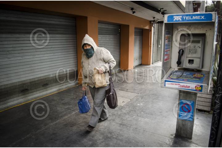 MEXICO, D.F., 03ENERO2013.- El Servicio Metereológico Nacional (SMN), alertó a la población de la República Mexicana a tomar precauciones por el mal tiempo que se encuentra en el país a consecuencia del frente frío no. 19. En la imagen, una señora bien abrigada camina hacia su trabajo. FOTO: EMILIANO RUVAL / CUARTOSCURO.COM