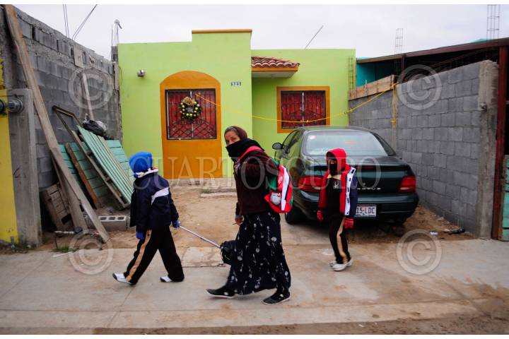 NUEVO LAREDO, TAMAULIPAS, 11ENERO2010.- Alerta el Servicio Meteorológico Nacional a la población, ante el próximo evento invernal severo que se prevé ingrese el próximo jueves. A pesar del frío padres de familia optaron por enviar a sus hijos a la escuela. Hubo tolerancia por parte de los directores extendiendo la hora de entrada. Las imágenes corresponden a la escuela Eduardo Mendoza Gonzalez. FOTO: DARIO URIBE/CUARTOSCURO.COM
