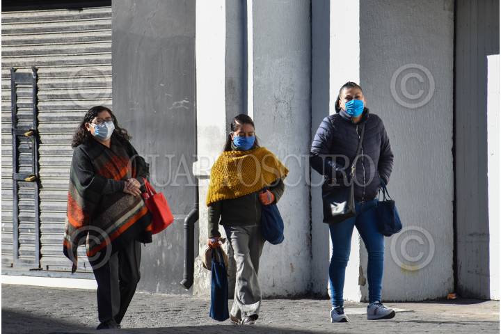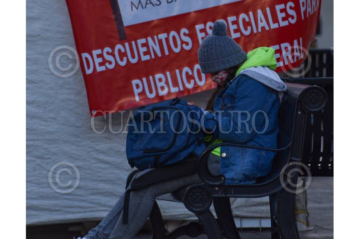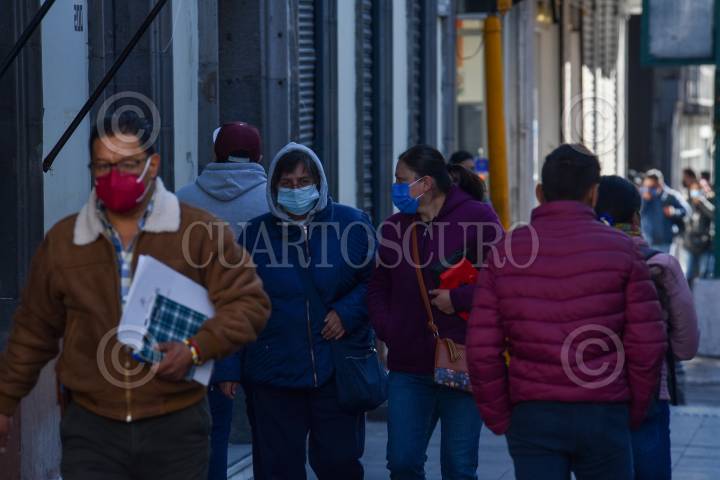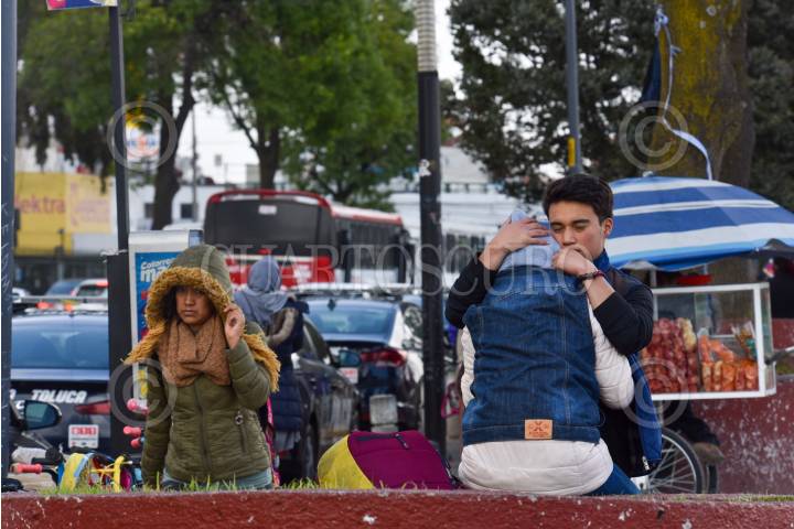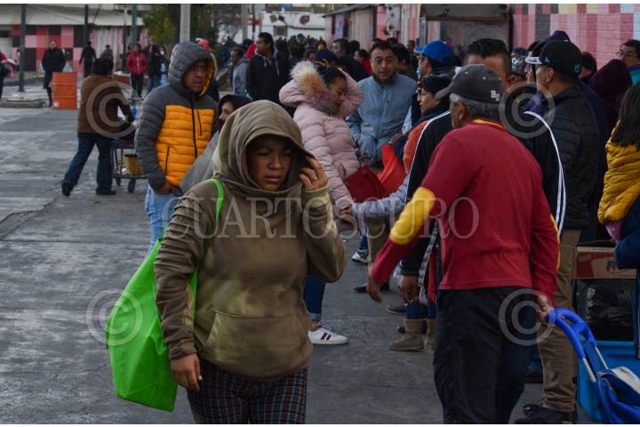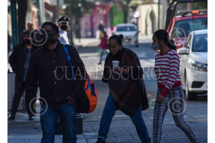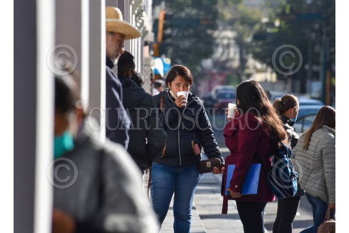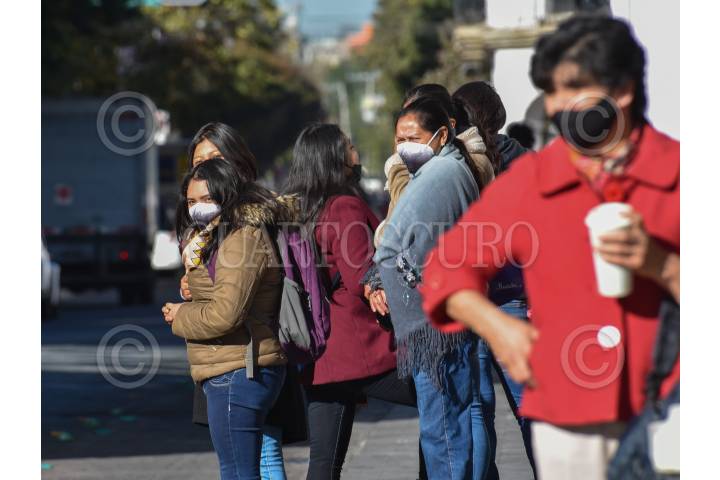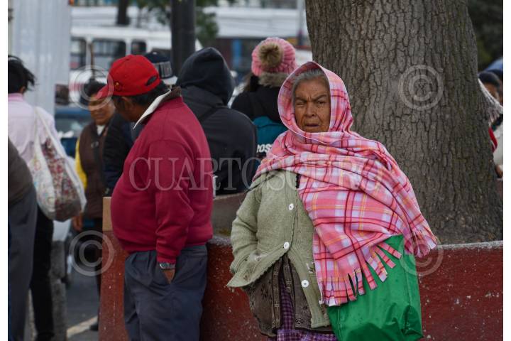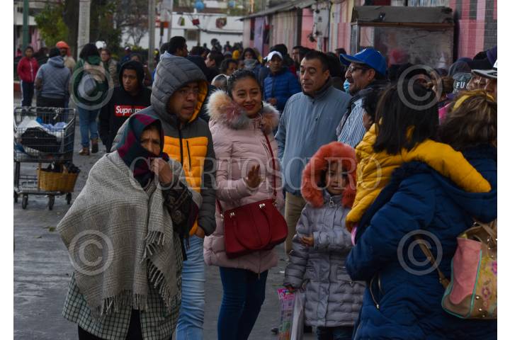 Ante las bajas temperaturas que se han registrado por el Frente Frío número 13 la población sale abrigada para realizar sus actividades.
