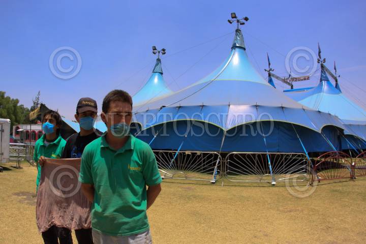 MÉXICO D.F., 27ABRIL2009.- Personal que labora en el Circo usa cubrebocas como medida preventiva debido al brote de influenza porcina, el circo se encuentra cerrado y se espera abrir sus puertas para el 7 de mayo esto se debe a la alerta sanitaria que se vive en el Distrito Federal FOTO: SÁSHENKA GUTIÉRREZ/CUARTOSCURO.COM