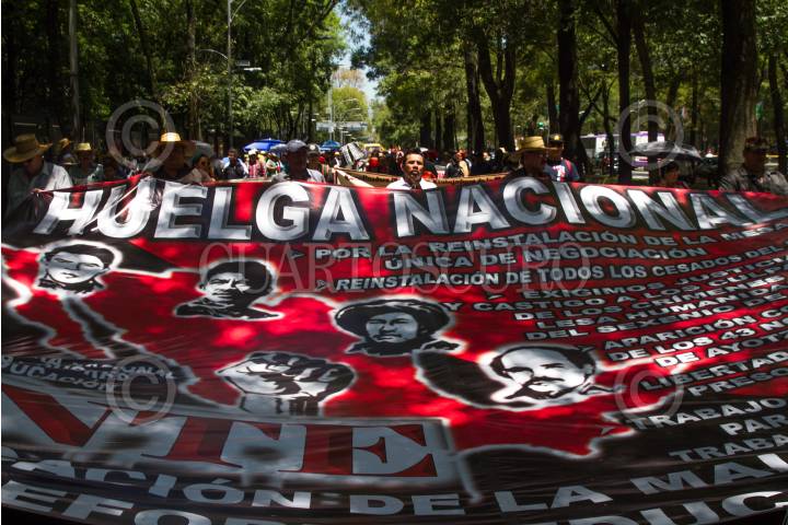 MÉXICO, D.F., 30ENERO2014.- Maestros de la Coordinadora Nacional de Trabajadores de la Educación marcharon por Reforma del Monumento a la Revolución a la Secretaria de Gobernación, por la abrogación de las reformas Educativa, Energética y Hacendaria. FOTO: MOISÉS PABLO /CUARTOSCURO.COM