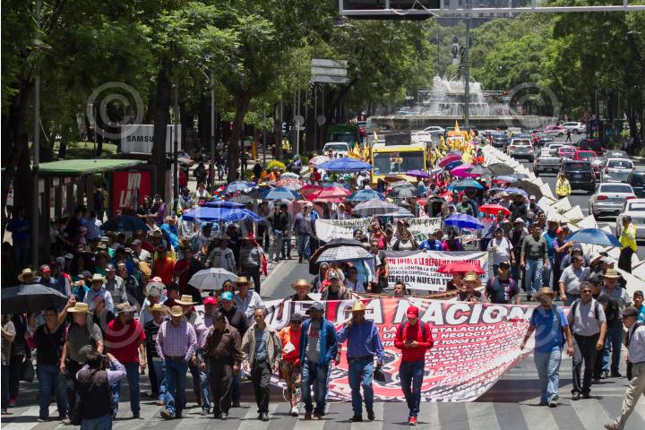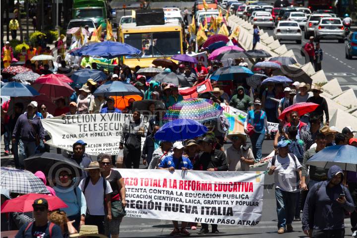 CIUDAD DE MÉXICO, 04JUNIO2018.- Maestros de la Coordinadora Nacional de Trabajadores de la Educación (CNTE) marcharon por avenida Reforma en lo que llamaron una "huelga nacional" por la abrogación de la Reforma Educativa. Los profesores llegaron de varios estados del país, pero principalmente de Oaxaca, por la mañana llegaron en camiones que fueron retenidos por algunas horas por la policía capitalina en las entradas de la ciudad, los inconformes han anunciado que instalarán un campamento en las inmediaciones de la Secretaría de Gobernación hasta que sea instalada una mesa de diálogo. FOTO: MOISÉS PABLO /CUARTOSCURO.COM