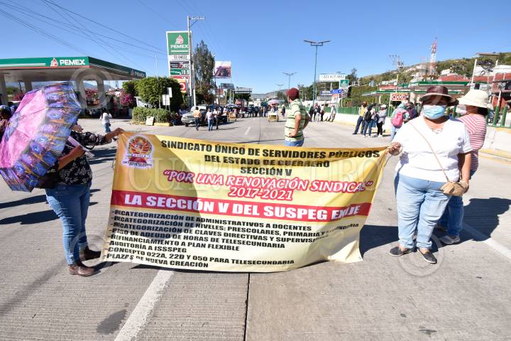 Integrantes de la CETEG bloquearon el Parador del Marqués para exigir la abrogación de la Reforma Educativa y la incorporación del FONE a 4 mil 700 trabajadores.