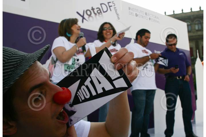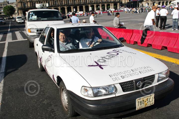 MÉXICO D.F., 13JUNIO2009.- Trabajadores del Instituto Electoral del Distrito Federal dieron inicio a las caravanas de promoción del voto, repartirán 200 mil volantes, 20 mil calcomanías y 60 carteles, para combatir el abstencionismo en el próximo proceso comicial. FOTO: ISAAC ESQUIVEL/CUARTOSCURO.COM