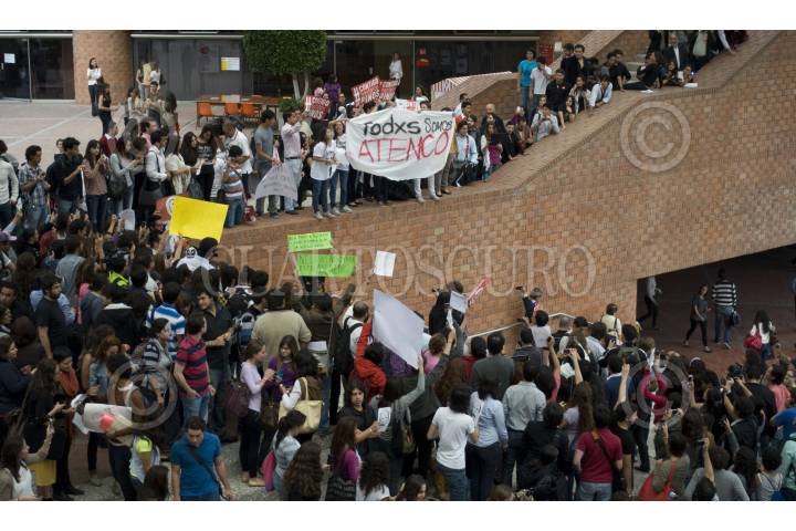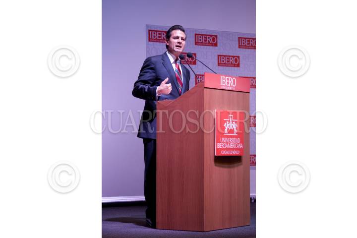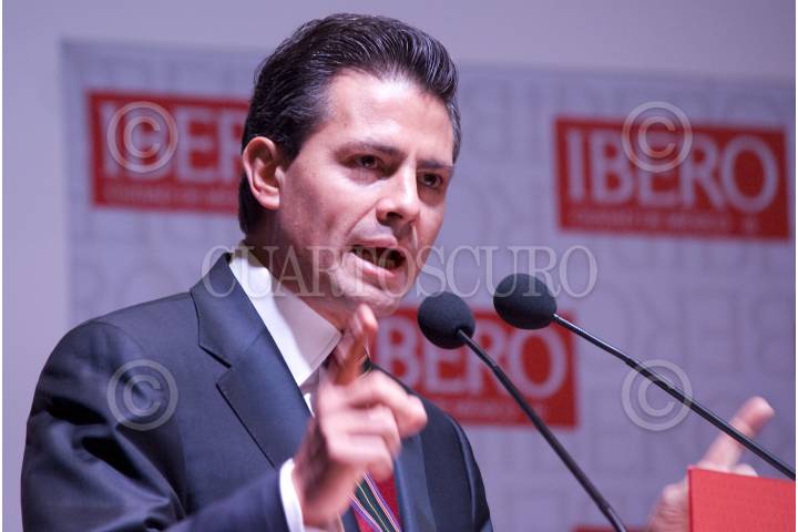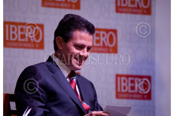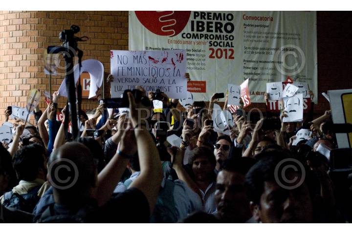 MÉXICO, D.F., 11MAYO2012.- Enrique Peña Nieto, candidato a la Presidencia de la República por el PRI, asistió a la Universidad Iberoamericana de donde salió abucheado por la mayor parte de los alumnos, quienes le reclamaron los feminicidios en su estado, Atenco y su relación con Carlos Salinas de Gortari. Portaron máscaras y pancartas de protesta. FOTO: CARLOS VARGAS /CUARTOSCURO.COM