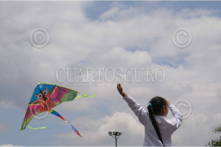 CIUDAD DE MÉXICO, 23JUNIO2024. - Una infante vuela un papote como parte de las actividades de protesta contra el abuso sexual infantil. FOTO: DANIEL AUGUSTO /CUARTOSCURO.COM