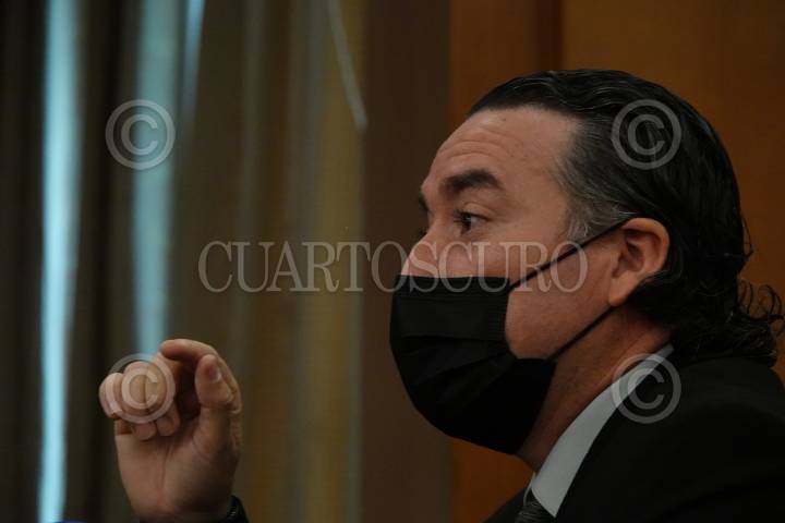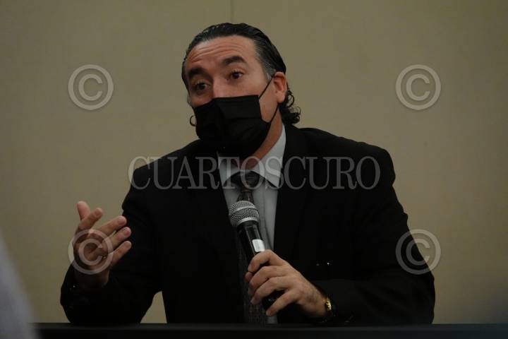 David Dorantes durante la conferencia de prensa con motivo del caso de los policías de Yucatán acusados del homicidio del joven José Eduardo Ravelo.
