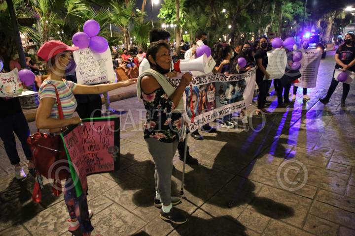 Familiares que fueron violentadas por la policía de Chimalhuacán participaron en el mitin.