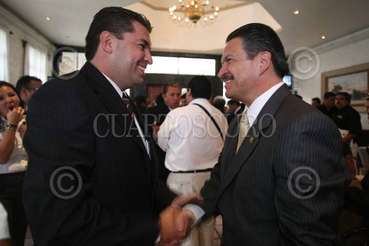 ACÁMBARO, GUANAJUATO, 10OCTUBRE2009.- Gerardo Silva Campos, tomo protesta como nuevo alcalde de esta alcaldía, saluda a Carlos Navarrete, presidente de la mesa directiva del Senado. El perredista señalo que con la llegado de Silva Campos, se acabó la política de puertas cerradas y oídos sordos a las necesidades y solicitudes de la gente. El legislador guanajuatense refrendó su compromiso para que este municipio cuente con la gestión y apoyo de los legisladores del PRD en el Congreso de la Unión para que no disminuyan los recursos destinados a esta entidad en el presupuesto federal. FOTO: CUARTOSCURO.COM