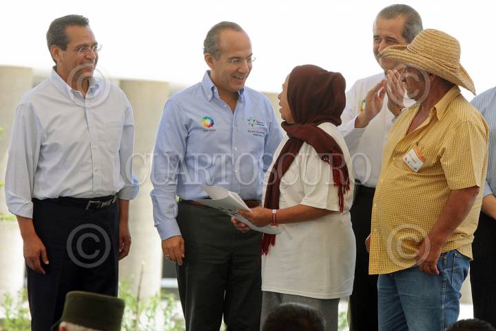 ACAMBARO, GUANAJUATO, 28JUNIO2011.- Felipe Calderon Hinojosa, Presidente de México junto a Jose Ángel Cordova Villalobos, Secretario de Salud Federal durante la inauguracion del hospital general de Acambaro. FOTO: EDUARDO MORALES/CUARTOSCURO.COM