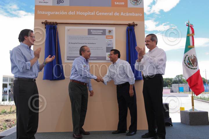 ACAMBARO, GUANAJUATO, 28JUNIO2011.- Juan Manuel Liva, Gobernador del estado junto a Felipe Calderon Hinojosa, Presidente de México y Jose Ángel Cordova Villalobos, Secretario de Salud Federal durante la inauguracion del hospital general de Acambaro. FOTO: ADOLFO JASSO/CUARTOSCURO.COM