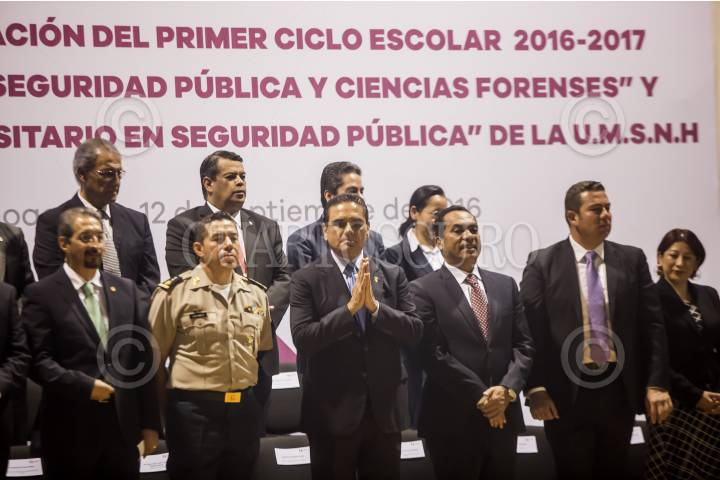 MORELIA, MICHOACÁN, 12SEPTIEMBRE2016.- Silvano Aureoles, acudió a la Inauguración del primer Ciclo Escolar 2016-2017 de la Licenciatura en Seguridad Pública y Ciencias Forenses, que se llevó a cabo en la Academia Regional de Seguridad Pública. FOTO: ALAN ORTEGA /CUARTOSCURO.COM
