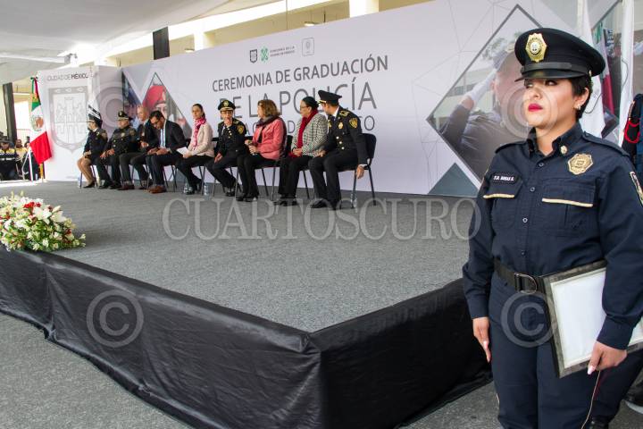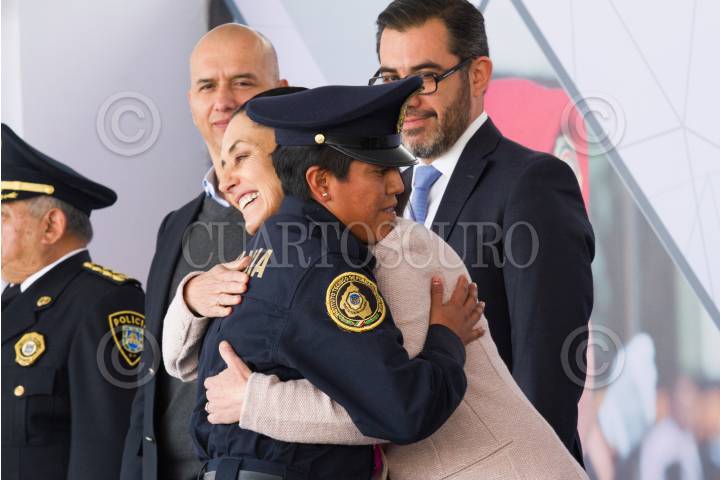 CIUDAD DE MÉXICO, 17ENERO2019.- Claudia Sheinbaum, jefa del Gobierno de la Ciudad, junto con Jesús Orta, director de Seguridad Ciudadana y Salvador Guerrero Chiprés del Consejo Ciudadano, en la ceremonia de graduación de la Academia Universidad de la Policía de la Ciudad de México. FOTO: VICTORIA VALTIERRA /CUARTOSCURO.COM