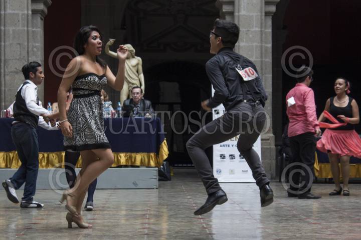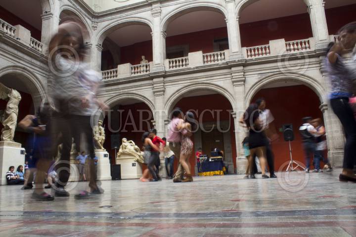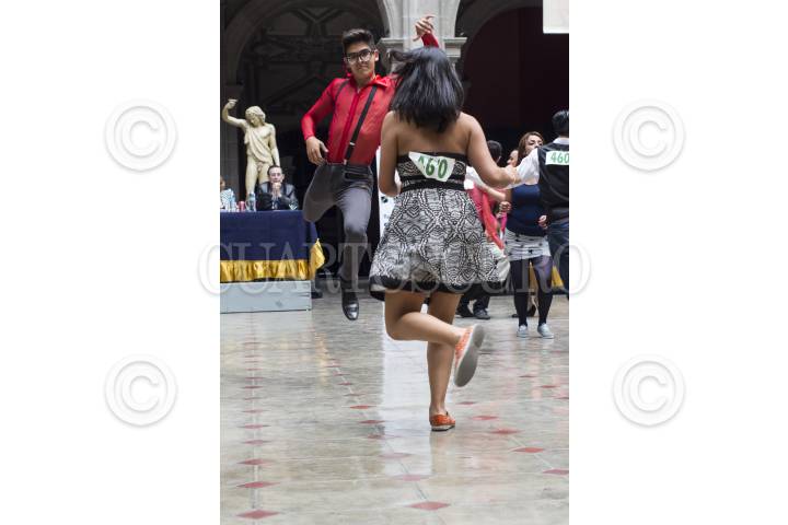 MEXICO, D.F., 15MARZO2014.-Como parte del programa SuSede en el Centro, de la UNAM, el día de hoy se llevó a cabo el segundo maratón de baile en la Academia de San Carlos, en el cual participaron aproximadamente quince parejas, que bailaron al ritmo de diferentes géneros musicales, desde norteño hasta rock and roll. El jurado estuvo integrado por Lolita Cortés y Roberto Mitsuko, quienes evaluaron la destreza y originalidad de los bailarines. FOTO: DAVID POLO /CUARTOSCURO.COM