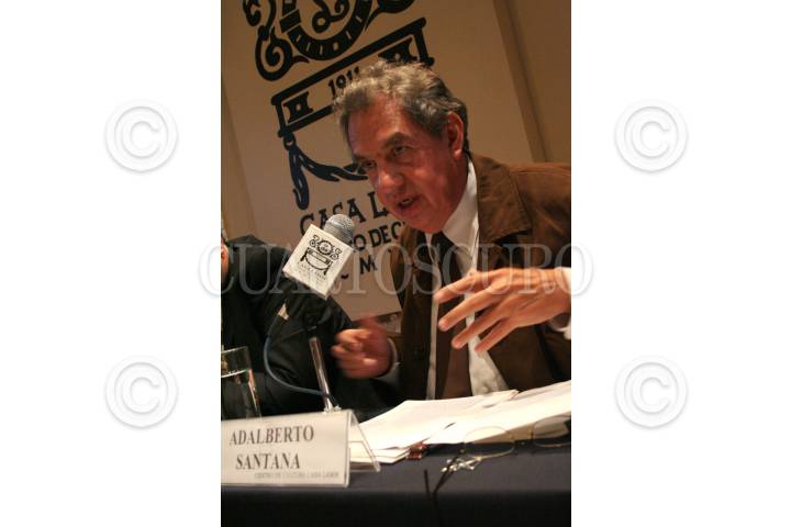 MÉXICO; D.F. 28AGOSTO2006.- La Casa Lamm organizó la conferencia "México: ¡auge del narcotráfico o narcoestado?"; el cual fue moderado por Ángel Guerra y en el que participaron Carlos Fazio, José Reveles, Simón Vargas y Adalberto Santana. FOTO: Isaac Esquivel/CUARTOSCURO.COM