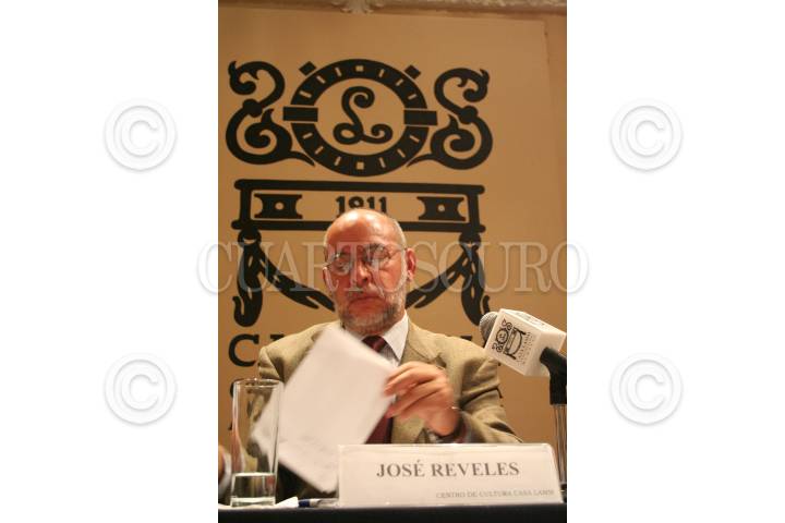 MÉXICO; D.F. 28AGOSTO2006.- El periodista José Reveles participó en la conferencia "México: ¡auge del narcotráfico o narcoestado?" organizada por La Casa Lamm. FOTO: Isaac Esquivel/CUARTOSCURO.COM