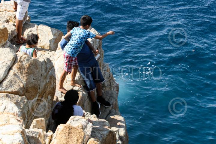 ACAPULCO, GUERRERO, 17ENERO2019.- Padres de familia llevan a sus hijos a pescar a lugares de alto riesgo en los acantilados del clarín, en la colonia de pie de la cuesta, donde se encuentran varias familias cuyo único sustento es la actividad pesquera. FOTO: BERNANDINO HERNÁNDEZ /CUARTOSCURO.COM