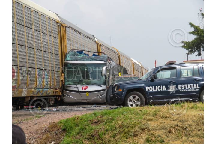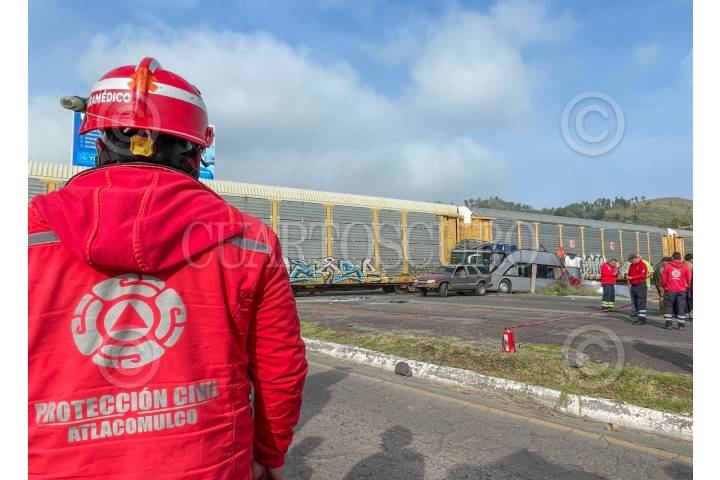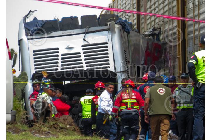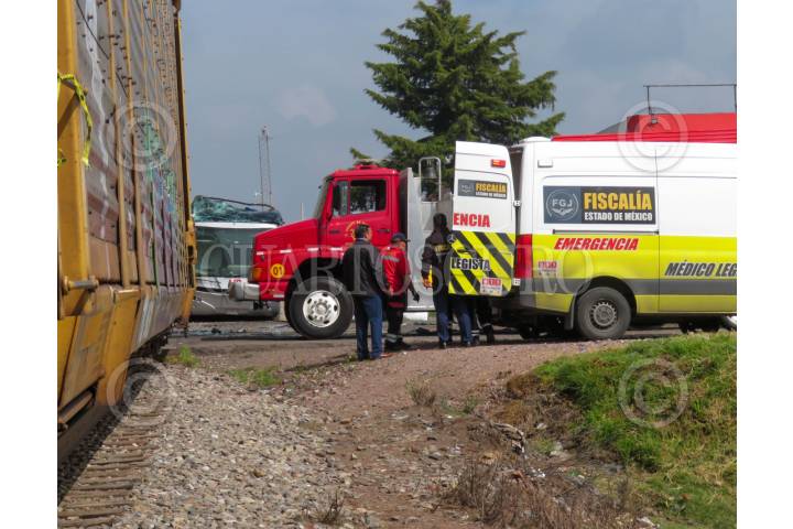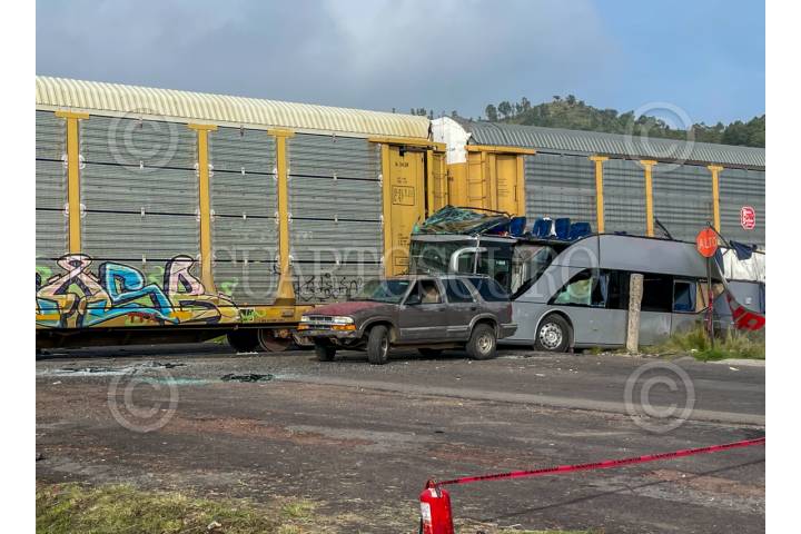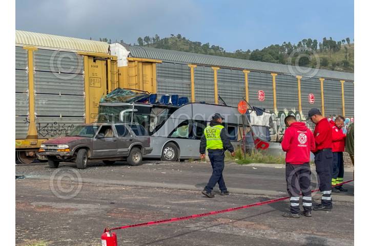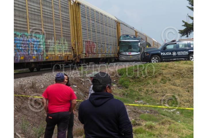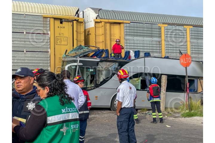 ATLACOMULCO, ESTADO DE MÉXICO, 08SEPTIEMBRE2025.- Con un saldo de al menos 9 personas muertas y 41 lesionadas, se registró el choque entre un tren y un autobús de pasajeros de la línea Herradura de Plata en la zona industrial de Atlacomulco. Servicios de emergencia arribaron al lugar para atender a las víctimas. FOTO: CRISANTA ESPINOSA AGUILAR / CUARTOSCURO.COM