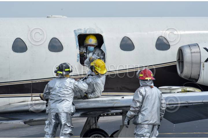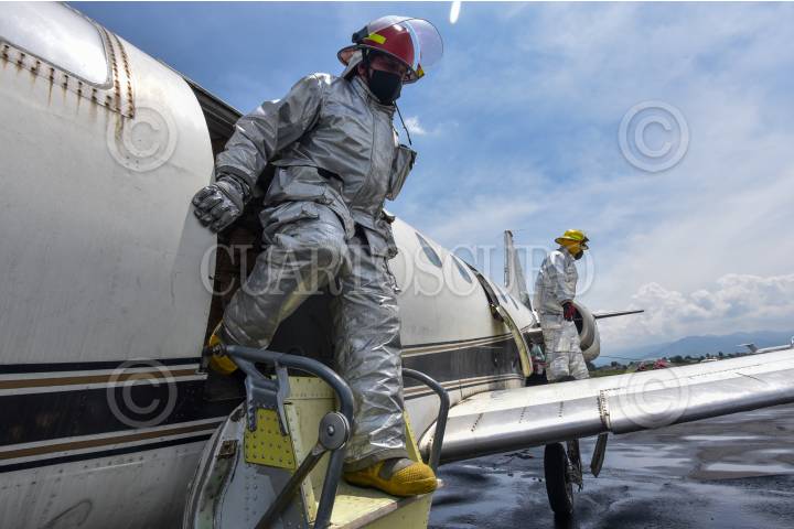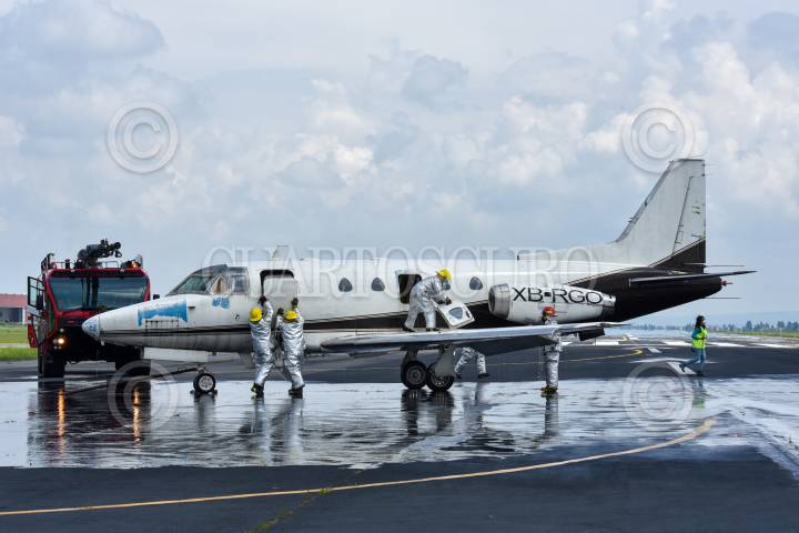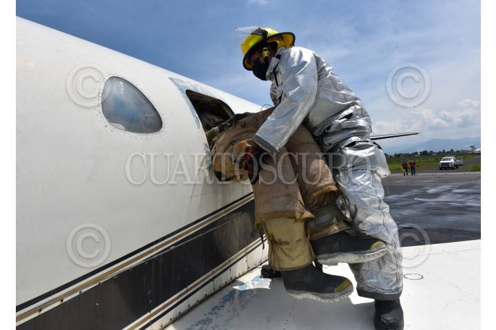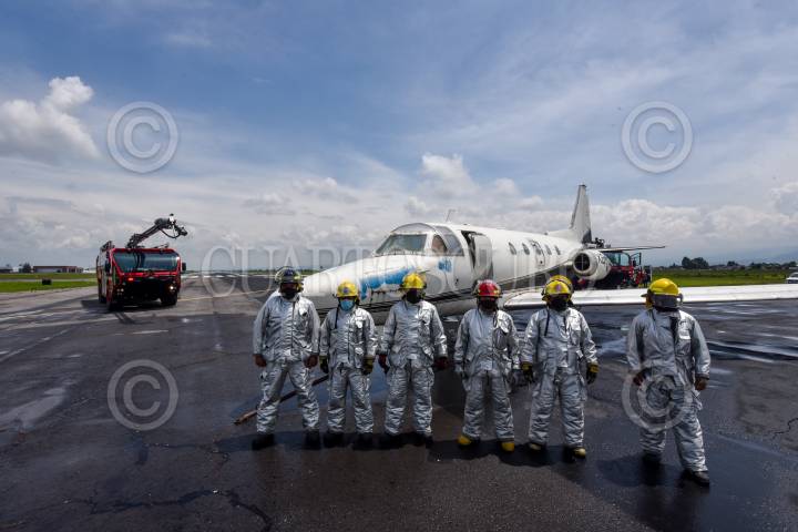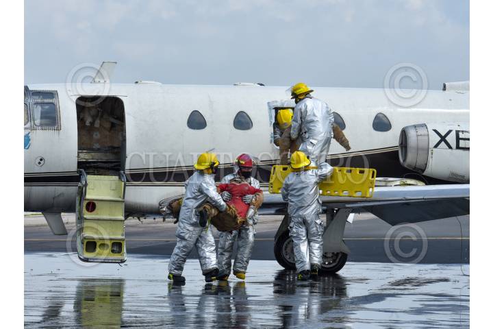 Simulacro accidente de aeronave en el Aeropuerto Internacional de Toluca, teniendo un tiempo de respuesta no mayor a los 3 minutos garantizando les actuar inmediato en algún siniestro.
