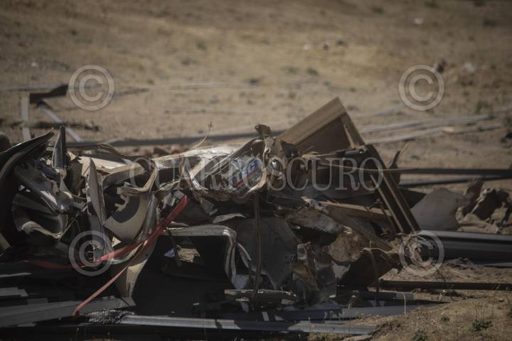 Escombros del trailer tras el choque que colapso la caseta de Caseta de Caminos y Puentes Federales (Capufe)