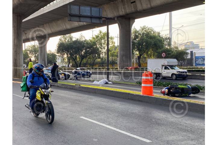 CIUDAD DE MÉXICO, 25ENERO2025.- Un motociclista perdió la vida luego de perder el control de su vehículo y estrellarse contra un poste, mientras conducía sobre Anillo Periférico Sur a la altura del Hospital de Pemex. El lugar fue custodiado por policías capitalinos y de transito FOTO: ROGELIO MORALES /CUARTOSCURO.COM