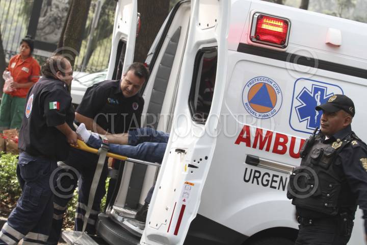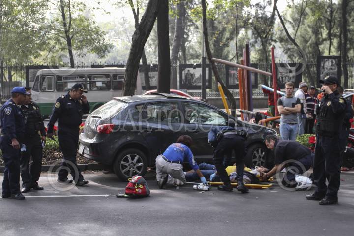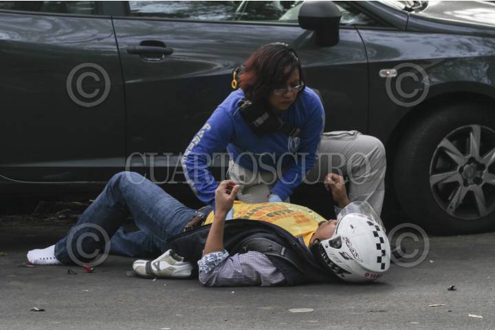 MÉXICO, D.F., 28NOVIEMBRE2015.- Un motociclista fue atendido por paramédicos después de que un automóvil lo impactó para rebasarlo. El automovilista se dio a la fuga y además provocó que otro automovilista colisionara contra el camellón central de Av. Reforma a la altura del Museo de Antropología. FOTO: MARÍA JOSÉ MARTÍNEZ /CUARTOSCURO.COM