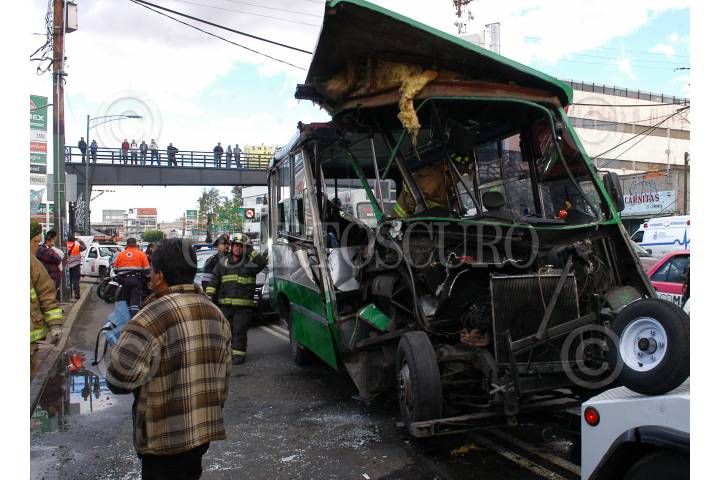MÉXICO, D.F., 14ENERO2016.- 10 personas heridas fue el saldo de un choque de un microbús de pasajeros de la ruta 17 que se impactó contra la parte trasera de un camión de volteo cuando circulaba sobre el eje tres y Canal Nacional en la colonia San Francisco Culhuacán. FOTO: ARMANDO MONROY /CUARTOSCURO.COM
