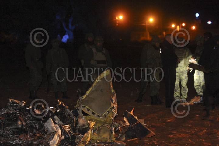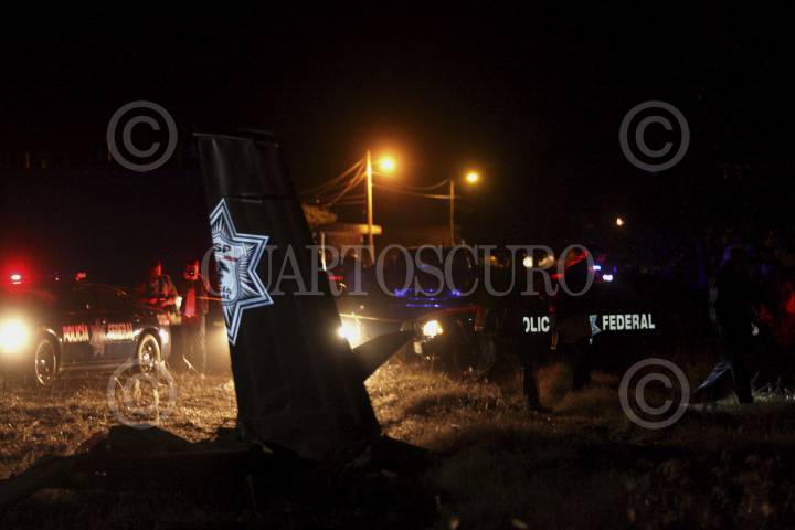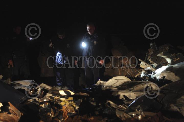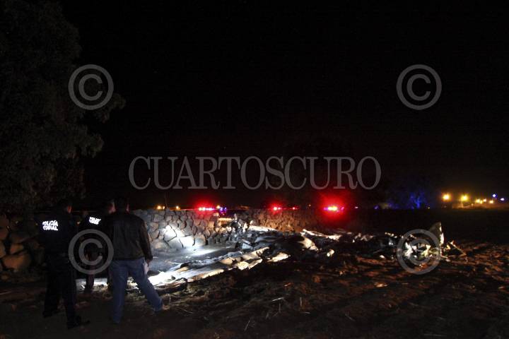 ACATIC, JALISCO, 22FEBRERO2012.- Una avioneta de la Policía Federal Preventiva (PFP), que salió de cabo San Lucas y que como destino tenía el Distrito Federal, se desplomó la noche del martes, lo cual dejo un saldo de tres personas fallecidas, el ciniestro ocurrió aproximadamente a las 21:00 hrs en un sembradío del poblado conocido como Paredones en este municipio, al lugar acudieron autoridades de la Policía Federal, Aeronáutica, personal del Ejercito Mexicano así como la Policía Estatal y Protección Civil entre otros. FOTO: FERNANDO CARRANZA GARCÍA /CUARTOSCURO.COM