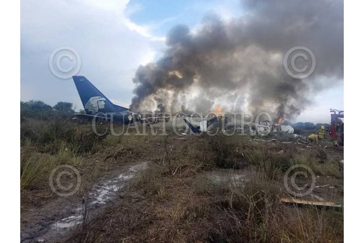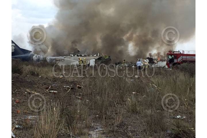 DURANGO, DURANGO, 31JULIO2018.- Un avión de la empresa Aeroméxico se vino abajo tras cinco minutos de haber despegado del Aeropuerto Guadalupe Victoria, se habla de que iban alrededor de 100 pasajeros en la aeronave. El vocero de protección civil del estado, Alejandro Cardoza, indicó que se trata del vuelo AM2431 Durango-Ciudad de México, y reportó a 80 personas lesionados. FOTO ESPECIAL /CUARTOSCURO.COM