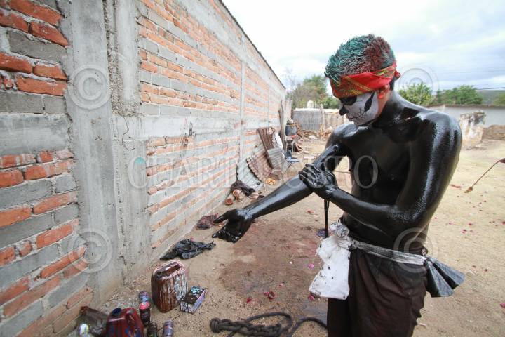 SAN MARTÍN TILCAJETE, OAXACA, 13FEBRERO2018.- Pobladores del municipio de San Martín Tilcajete, ubicado en la región de Valles Centrales salieron a las calles de esa localidad ubicada a 27 kilómetros de la ciudad de Oaxaca pintados con aceite de motor quemado y máscaras o cuernos. De acuerdo con la tradición, esto se debe a que al iniciar la Cuaresma no podrán hacer más travesuras, por lo que un día antes del miércoles de ceniza salen de sus hogares para recorrer la población pintando a quienes encuentran a su paso. FOTO: ARTURO PÉREZ ALFONSO/ CUARTOSCURO.COM