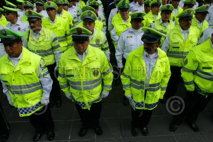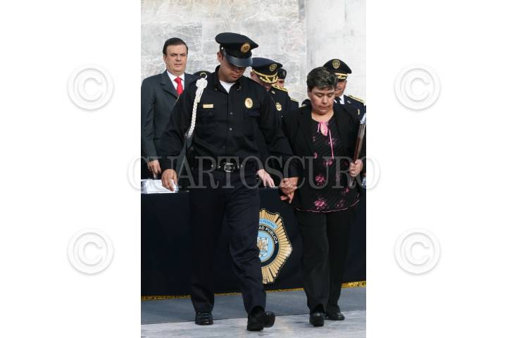 MÉXICO, D.F., 19JUNIO2009.- La Secretaria de Seguridad Publica del Distrito Federal otorgo cuatro mil 70 ascensos con los ingresos adicionales respectivos a policías destacados en su labor, en un acto que se realizo en el el Altar a la Patria, el secretario de Seguridad Publica Manuel Mondragón y Kalb, calificó esta ceremonia como un “hecho histórico”, dado que por primera vez en por lo menos 25 años numerosos elementos son promovidos, lo cual consideró plenamente justificable, pues para exigir policías eficaces hay que ponerse en sus zapatos y darles lo necesario para serlo. FOTO: RICARDO CASTELAN/CUARTOSCURO.COM