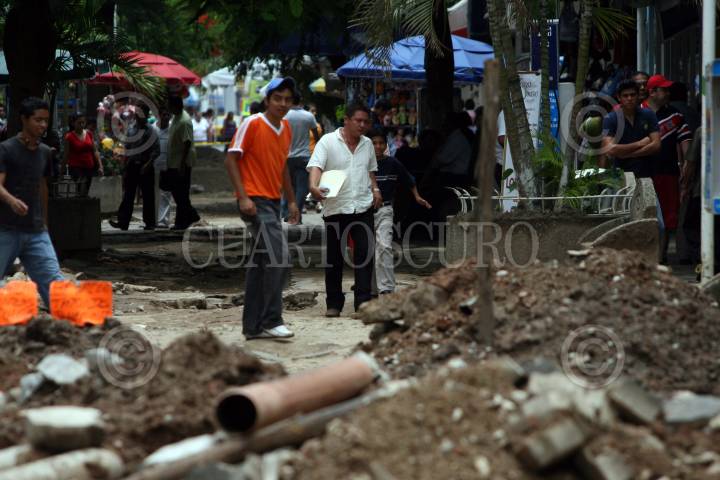 VILLAHERMOSA, TABASCO, 22JUNIO2009.- Comerciantes establecidos en la Zona Luz, la cual es el corazón del comercio y de la capital tabasqueña, consideran que debido a los trabajos que se están realizando de remodelación y destruyendo las calles; esta arrojando al fondo y en declive las ventas. FOTO: MARCO POLO GUZMÁN HERNÁNDEZ/CUARTOSCURO.COM