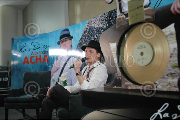 MÉXICO, D.F., 23AGOSTO2011.- El cantautor Alexander Acha develó el disco de oro por sus altas ventas de su segundo álbum, "la vida es" a tan solo un mes de su lanzamiento. FOTO: FRANCISCO RODRÍGUEZ/CUARTOSCURO.COM