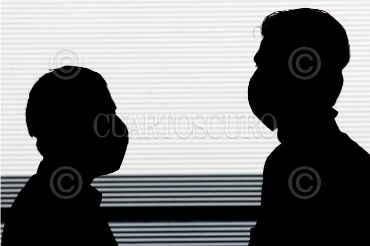 MÉXICO, D.F., 11MAYO2009.- Dos guardias de la escolta que acompañan al jefe de Gobierno, Marcelo Ebrard Casaubón, usan tapabocas como medida preventiva para evitar contagios por el virus de la influenza humana. FOTO: RICARDO CASTELAN/CUARTOSCURO.COM