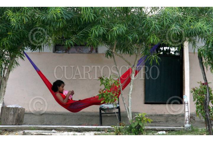 TENOSIQUE, TABASCO, 06FEBRERO2008.- El diario acontecer en la comunidad Boca del Cerro. En la grafica una joven habitante se hamaquea en el patio delantero de su casa. FOTO: MARCO POLO GUZMÁN HERNÁNDEZ/CUARTOSCURO.COM