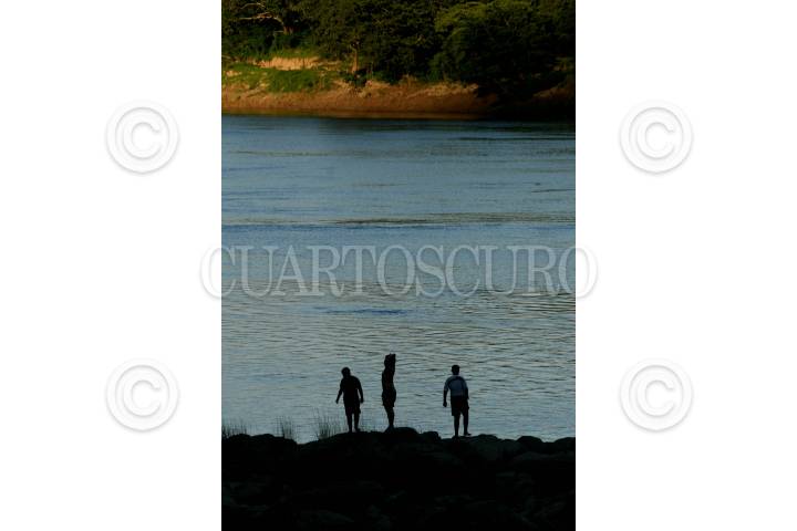 TENOSIQUE, TABASCO, 06FEBRERO2008.- El diario acontecer en la comunidad Boca del Cerro. En la imagen una familia de pescadores se refresca sobre las orillas del caudaloso río Usumacinta. FOTO: MARCO POLO GUZMÁN HERNÁNDEZ/CUARTOSCURO.COM